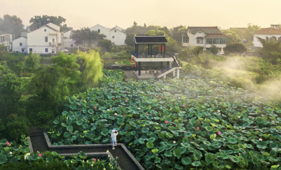 景观增色 “花品厌媚涵清雅,根质重节养虚心”,这是桃源村前寺舍爱莲亭上的对联。如今,莲也已成为了当地的文化手刺。除莲花外,村民兼种与莲花品性相似的水芹,“勤廉”,谐音芹莲,寄意做人勤勤恳恳、清正廉洁。