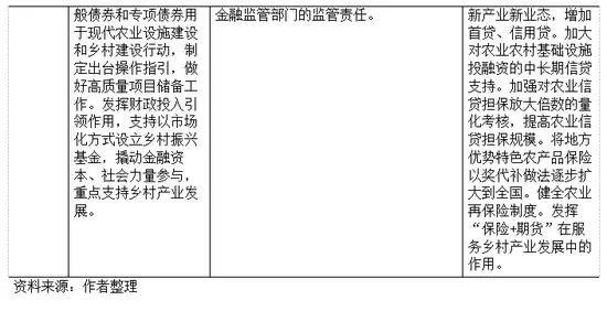 为农业发展匹配适应的金融资源是历年中央文件部署的发展方向之一。2016年,中央一号文件强调要推动金融资源更多向农村倾斜,对农村金融服务体系、金融机构信贷资源及产品模式创新、农村金融监管与风险防控进行部署。2017年,中央一号文件强调要加快农村金融创新,特别是抵押融资产品范围的拓宽、保险制度的设立及对涉农企业的综合金融服务等。同时,对农产品期货、期权市场建设提出了更高要求。2018-2019年,中央一号文件延续了前期的意见方向与思路,主要对金融机构如何更好地对“三农”领域加大信贷及综合金融服务进行指引。2020年,中央一号文件在前期基础上加入了对中央及地方财政“三农”投入力度,在财政预算中向农业农村倾斜,通过地方政府一般债券指出安排支持易地扶贫及乡村振兴项目建设的专项债。要强化对“三农”信贷的货币、财税、监管政策正向激励,给予低成本资金支持。以财税、信贷及综合化服务为主体的综合金融服务将为“三农”服务提供更加全面的资金支持。结合2021年中央一号文件的部署,展望“十四五”,金融机构支持农业发展将有望迎来新机遇。